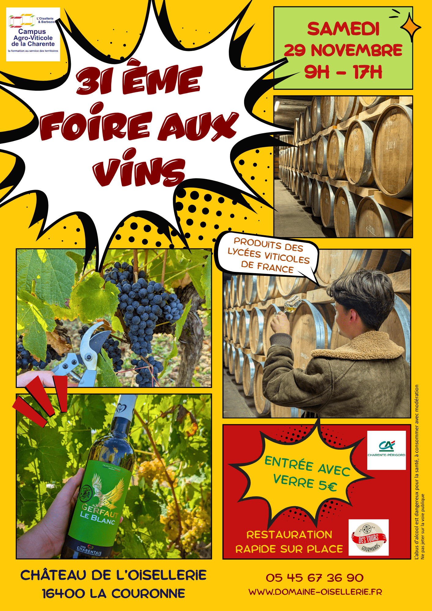 ✨ Le samedi 29 novembre, ne manquez pas la 31ème édition de la Foire aux Vins des lycées viticoles de France !
